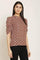 PINK SQUARE Womens Printed Regular Fit Top with Foil Print, Round Collar, 3/4th Ruffled Sleeves, Suitable as Office & Casual Wear